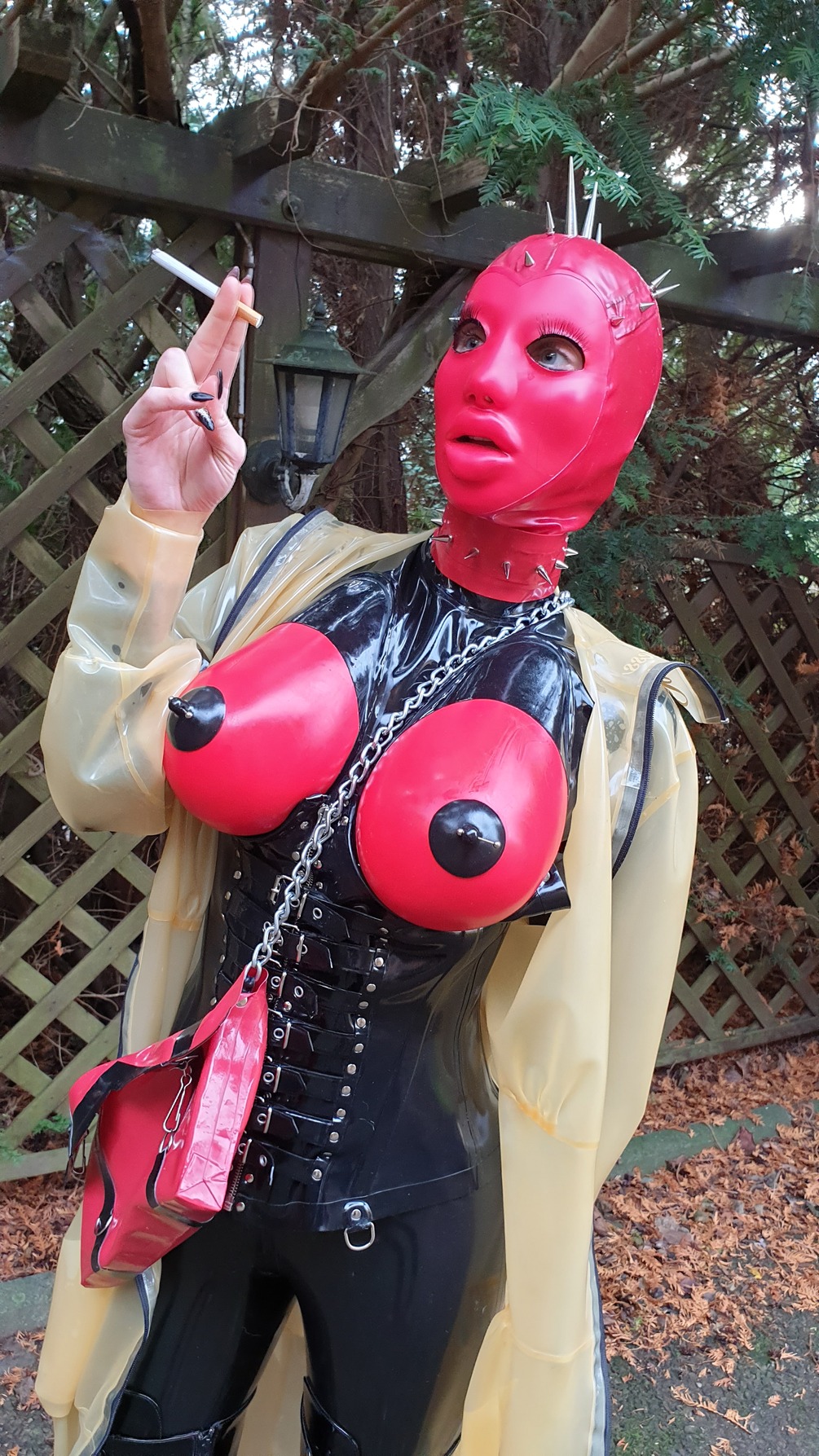Lady Sophie smokes the cigarette with relish and looks deep into your eyes. Everytime masked Lady.