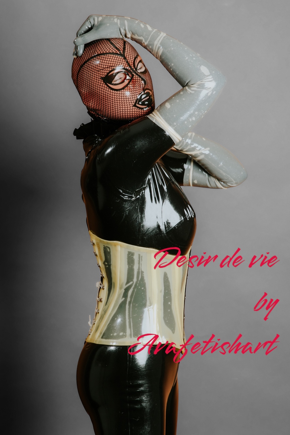The passionate woman "Desir de vie" visited me to feel latex on her skin. I cut the resulting material and made it available here. She is passionate and lets herself fall, for the first time masked and fully in rubber.